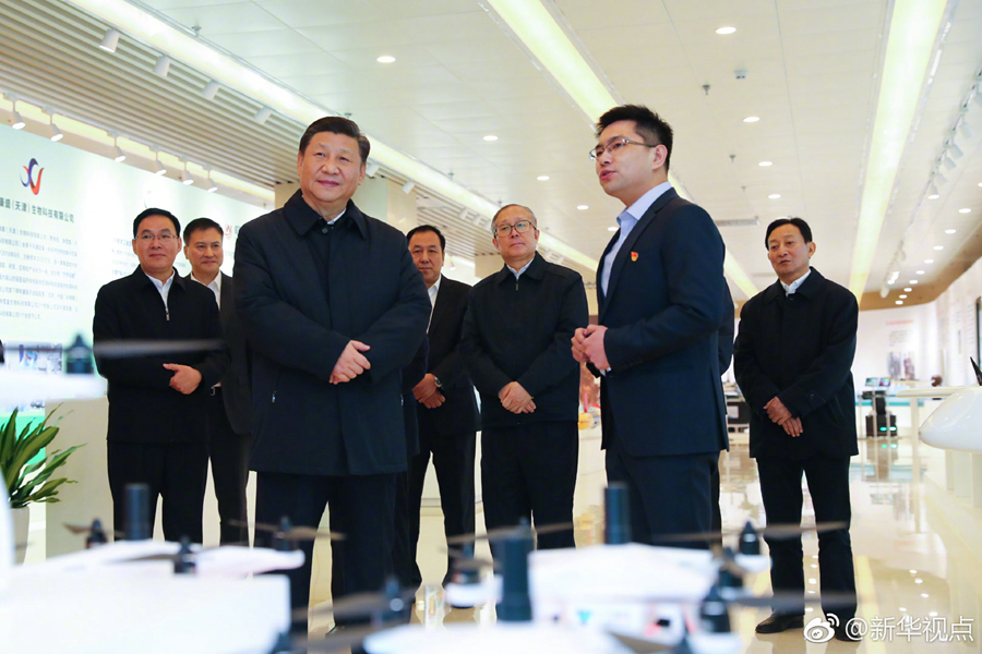 17日下午,习近平来到天津滨海——中关村协同创新展示中心,仔细观看了“天河”系列超级计算机、飞腾芯片、麒麟操作系统、人工智能配电网带电作业机器人、无人机集群智能控制系统等产品展示。他对在场的企业研发人员说,高质量发展要靠创新,我们国家再往前发展也要靠自主创新。怎么能使中国人的创新积极性调动起来?党和政府都在研究各种政策,创造良好氛围,营造优质环境。我们要继续做下去,让有创新梦想的人能够心无旁骛、有信心又有激情地投入到创新事业中,中国的动能转换、高质量发展就一定能够实现。