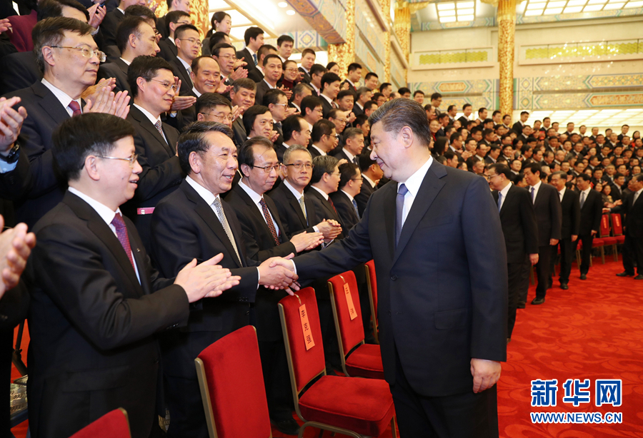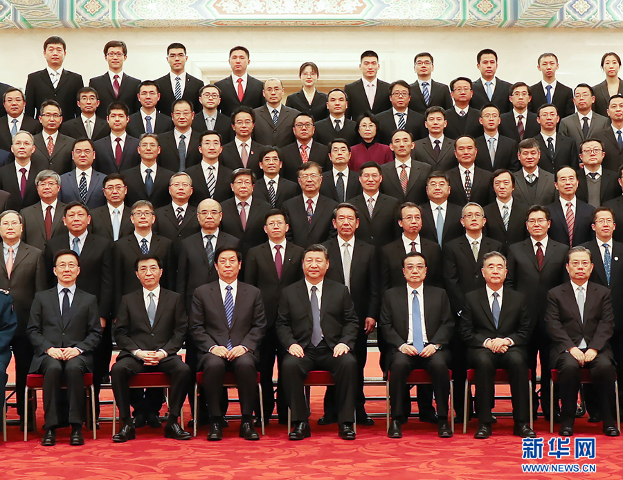 2月20日,党和国家领导人习近平、李克强、栗战书、汪洋、王沪宁、赵乐际、韩正等在北京人民大会堂会见探月工程嫦娥四号任务参研参试人员代表。 新华社记者鞠鹏摄