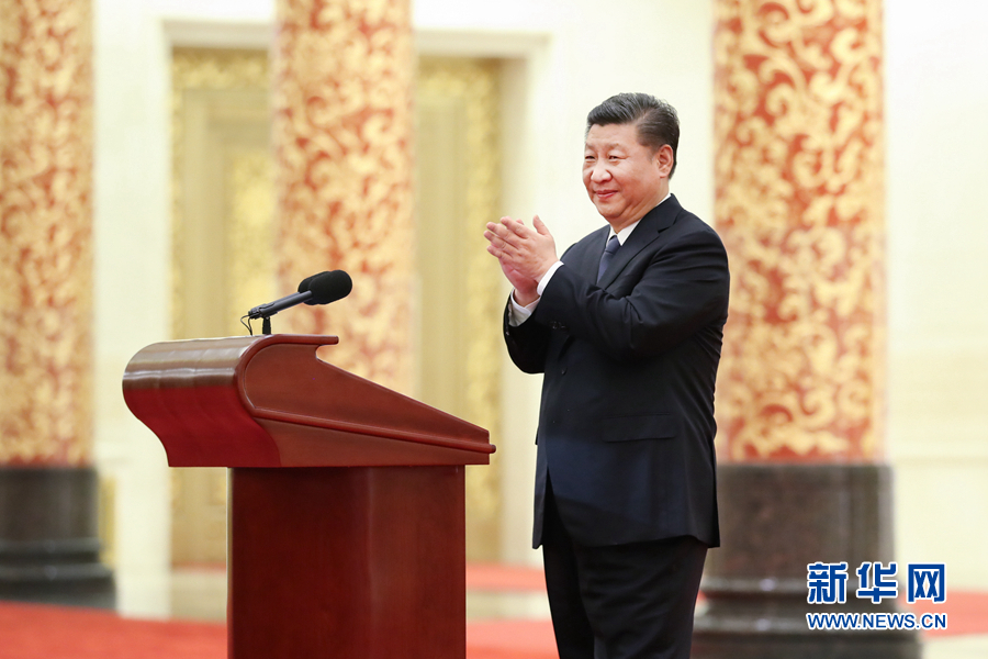 2月20日,党和国家领导人习近平、李克强、栗战书、汪洋、王沪宁、赵乐际、韩正等在北京人民大会堂会见探月工程嫦娥四号任务参研参试人员代表。这是习近平发表重要讲话。 新华社记者鞠鹏摄