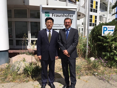 日前,市科委主任戴永康访问了德国弗朗霍夫应用研究促进协会生产设备和结构技术研究所(Fraunhofer IPK),与副所长Kohl教授进行工作会谈,就产业创新合作深入交换意见。