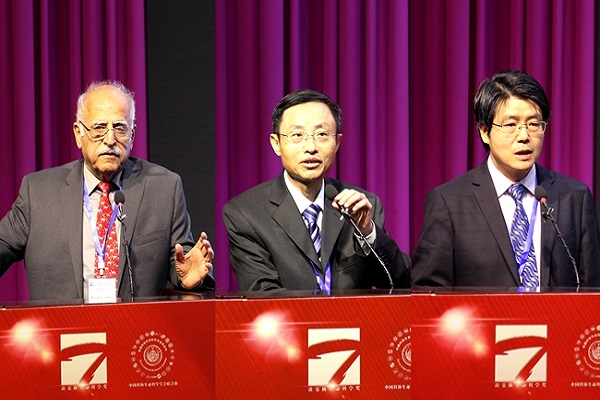 Dinshaw J Patel、林鸿宣、邵峰(从左至右)作大会主题报告