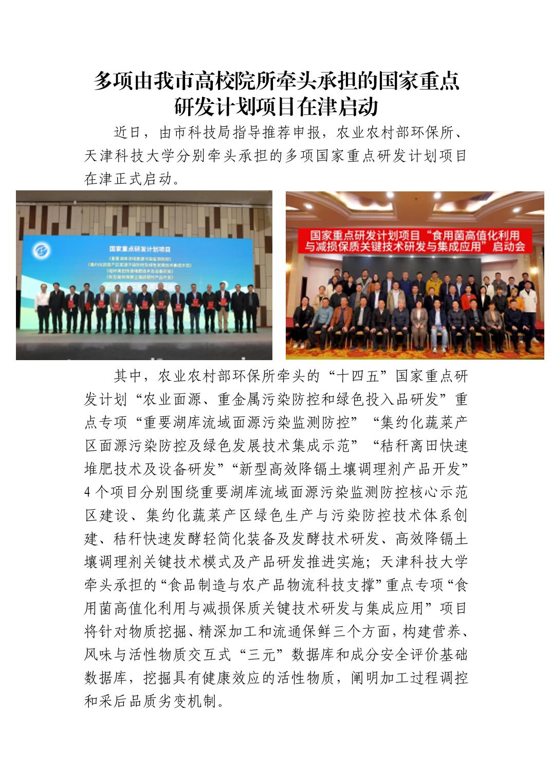 多项由我市高校院所牵头承担的国家重点研发计划项目在津启动