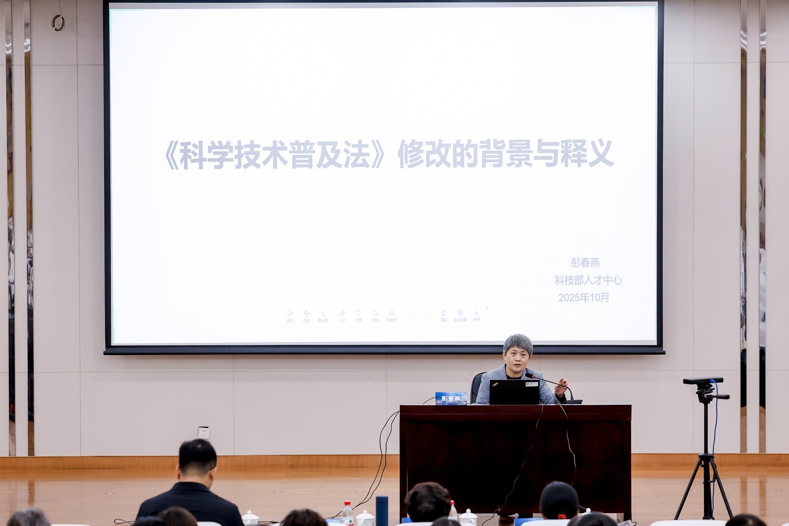 培训会上,市科技局引智处主要负责同志致辞,全面分析了我市科普人才队伍结构,系统部署了我市科普工作重点任务。科技部科技人才交流开发服务中心五处处长彭春燕同志围绕《科普法》的地位和作用、修订背景及修订的主要内容进行权威解读,为科普工作人员厘清了法律框架下的工作职责与方向,筑牢了依法开展科普工作的政策根基。市科技局引智处工作人员围绕科普项目、科普基地、科普赛事、评选表彰等科普工作相关政策进行了重点宣讲,打通科普政策落地“最后一公里”。